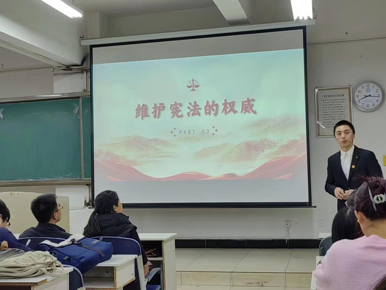 11月29日下午,法公司巡回普法宣讲团于本部2-201开展了“弘扬宪法精神 建设法治校园”宪法宣传活动,304永利集团2022级辅导员兼分团委书记李树勇老师与2022级全体新生参与此次活动。