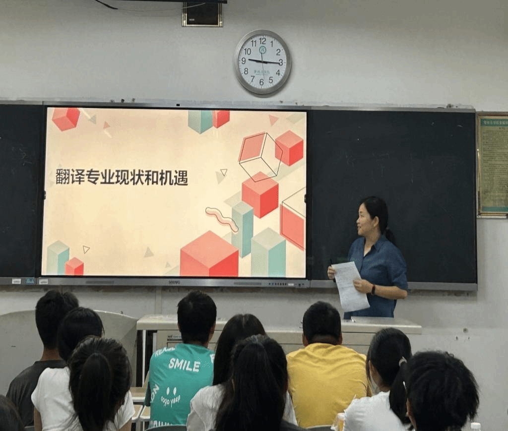 英语专业的新生在外国语多功能厅参加专业认知教育。韦丽、冯霞和夏敏三位老师主要从专业介绍、企业简介、行业现状概述、就业前景以及如何树立志向等方面为新生进行讲解。商务英语专业的新生专业认知教育在本部第一教学楼208教室举行。马东和刘盛明两位老师主要从专业历史和现状、培养目标与定位、就业前景等方面为新生进行讲解。李成丽、张晓平和彭元三位优秀员工给新生分享了自身学习历程并向新生投以殷切希望。同时,翻译专业的新生在本部第一教学楼209教室参加专业认知教育。冉明志、刘春亮、罗涌洁和罗小雁四位老师主要从实操学习、专业特性、专业现状及就业方向等方面为新生进行讲解。