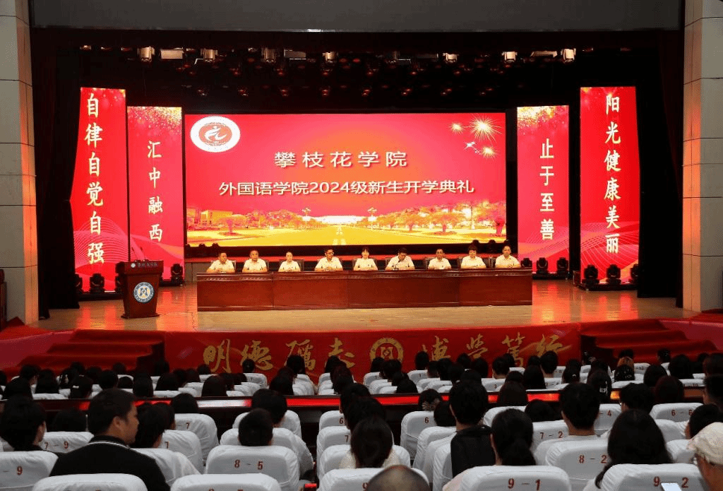 典礼上,公司领导为新生代表佩戴院徽。全体 2024 级新生在领誓人的带领下,举起右手郑重宣誓,“我将以繁荣富强祖国为己任,以服务奉献社会为根本,以不断提升综合能力为目标,刻苦求真,乐学善思,诚实守信,严于律己,尊师敬老,志存高远,立志成为自律自觉自强,阳光健康美丽的自律攀大人”誓言铿锵有力,在礼堂中久久回荡,激励着同学们成长为自律自觉自强、阳光健康美丽的攀大好青年。