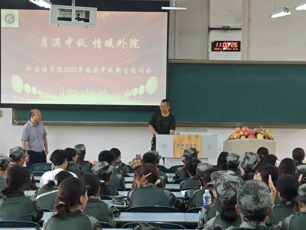 2025年9月28日上午,公司在尚学楼316教室举办了2025级新生国庆中秋慰问会。公司党委书记付乔、副经理(主持工作)高朝阳及新生辅导员彭勇、班主任向2025级新生表达了节日的问候并赠送了月饼与石榴,为新生开启老员工活送上了一份别具意义的“开学礼”。