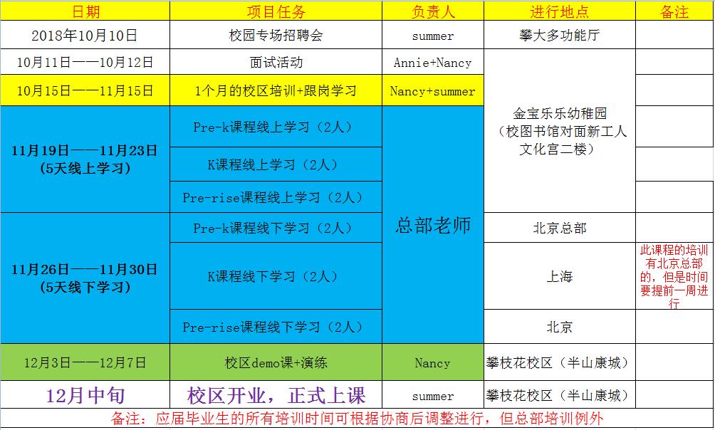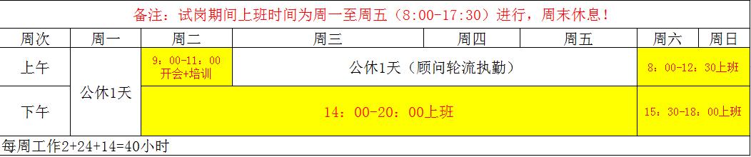 附表一:正式上班时间表
