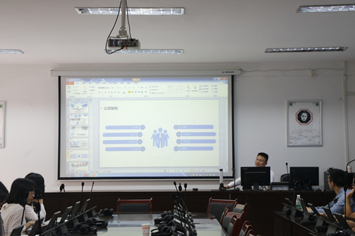 首先他以PPT的形式向同学们介绍了公司基本情况以及公司前景,让同学们了解了该公司的基本信息。然后介绍了本次招聘的职位,主要包括外贸业务员、业务专员和外贸单证员等,其中,他重点讲解了具体的工作任务和基本要求,让同学们充分认识这些职位的重要性。接着,他解答了同学们最为关注的事情---薪酬和假期,让同学们了解了该公司有关员工利益问题。最后,他热情地向同学们发出邀请并进行了初试选拔。