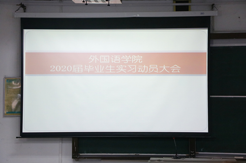 12月19日上午,由副经理王欢,书记付乔,员工科科长彭勇,英语教研室主任陈顺江老师、2016级辅导员何璇老师组织的2020届毕业生实习动员大会在第一教学楼1-1举行。