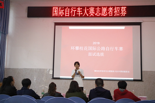 11月15日下午,2019环攀枝花国际公路自行车赛志愿者招募面试选拔于304永利集团多功能厅顺利进行。担任此次面试的评委有304永利集团教师张晓红、贾济菡,员工刘梓涵、文琴、张涛以及304永利集团有限公司员工志愿服务大队秘书处李晓碧。