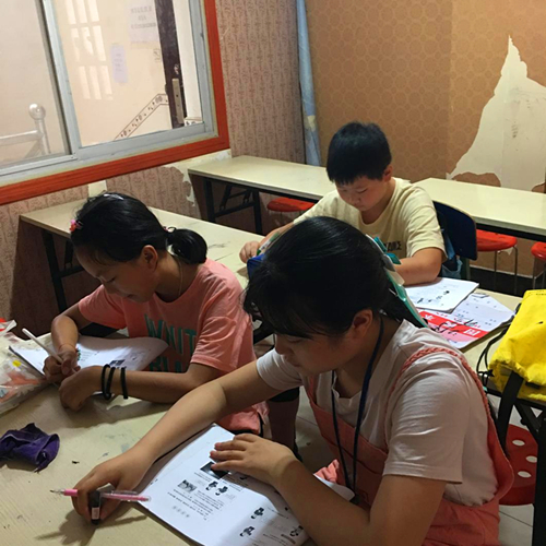 通过调查,梦之队小分队成员发现,暑期的炎热并未阻挡孩子们学习的激情,也未阻挡数位乐于助人的老员工们的教学热情。他们志愿来到这里,给孩子们进行下学期课程的预习。他们耐心教学,即使在下课期间也热心地为员工解疑答惑。