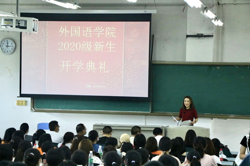 9月21日下午,公司20级开学典礼于第二教楼2-4正式展开。此次开学典礼由公司2020级辅导员何旋老师主持,教师代表解直委博士、外教代表Katie和员工代表谭静宣先后进行了发言,最后以廖红经理的致辞为公司20级新生开学典礼画上了完美的句号。每一位新生的脸上都洋溢着灿烂的笑容,在他们的眼神中能看到他们对未来生活的无限向往及期盼。通过本次开学典礼,同学们确立了新学期的目标和未来努力的方向,让他们备受鼓舞。期待他们成为未来的外院之光。