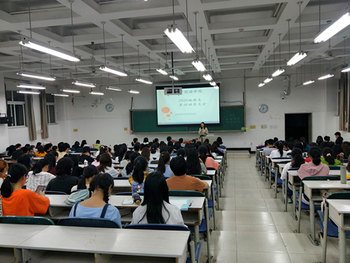 2020年10月30日晚7点,在二教2-2教室,举行了新生军训动员大会,2020级新生辅导员何旋老师出席大会, 2020级233名全体新生参加大会。