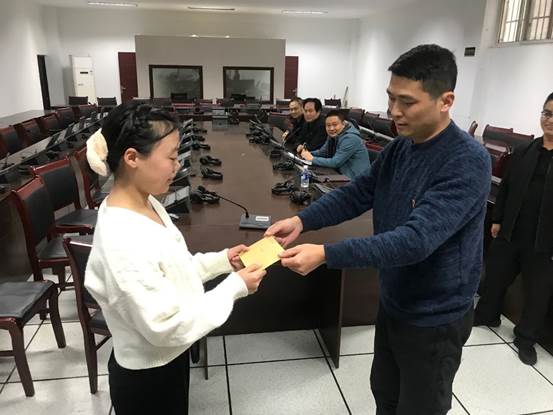 仪式之初,公司党委书记付乔和办公室主任隆涛作为代表将捐款发放给了受助员工。随后,付乔向贫困员工提出了三点希望:一要不忘初心,不要忘记在成长道路上来自政府和公司的关心,要刻苦学习、奋发图强、志存高远;二要严以律己、自强自立,努力成长为一名优秀的自律攀大人;三是要常怀感恩之心,以己之所学,回报社会、奉献爱心,将关爱的火种承传下去。受助员工深受鼓舞,纷纷表示今后一定会将勤奋学习进行到底,无论遇到多大的困难也不灰心不放弃,努力成为有用之才,并且在今后的生活中也将努力回馈社会,造福桑梓,不负众望。