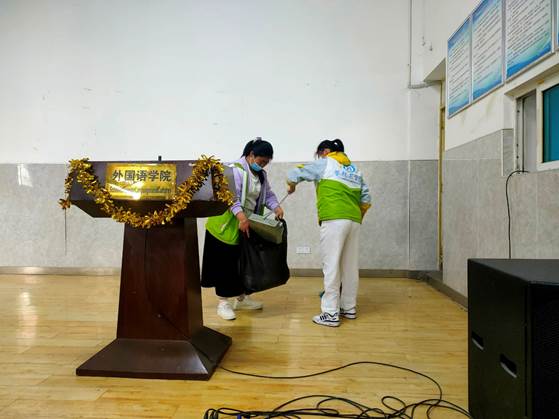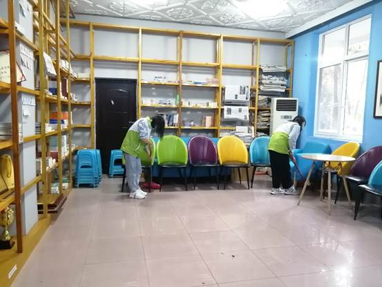 本次志愿活动中,所有志愿者认真擦拭办公桌,仔细清扫多功能厅地面,不遗漏任何一抹灰尘,不忽略任何一个角落。志愿者们共同协作,主要针对公司全部办公区、多功能厅、同声传译室以及文献阅读室等师生活动区域。