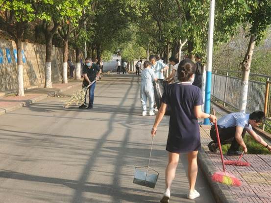 4月29日,公司党员老师和学子为弘扬劳模精神,创建美丽攀大,顺利开展公区晨扫活动。