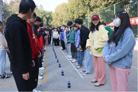 此次活动通过各种趣味小活动拉近同学们的心理距离。第一项:珠行万里,五人一组把乒乓球从起点运送到终点,用时最短即获胜。第二项:手速王,十人一队,两人一组,抢夺身前的饮料,先抢到的一组获胜。第三项:气球运纸杯,十人一队,用嘴吹起气球,并撑起纸杯将其从起点送至终点,用时最短获胜。第四项:心理知识抢答,以小组为单位,抢答心理知识题,积分最高的获胜。第五项:抢板凳,八人一组抢夺五个板凳,留到最后者即获胜。最后,对小组最终积分排序,再颁发对应奖项。