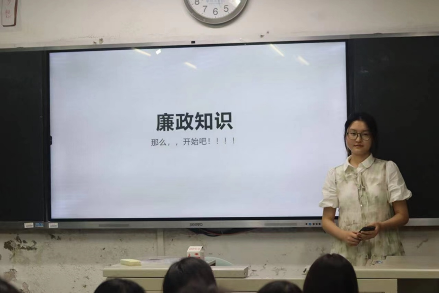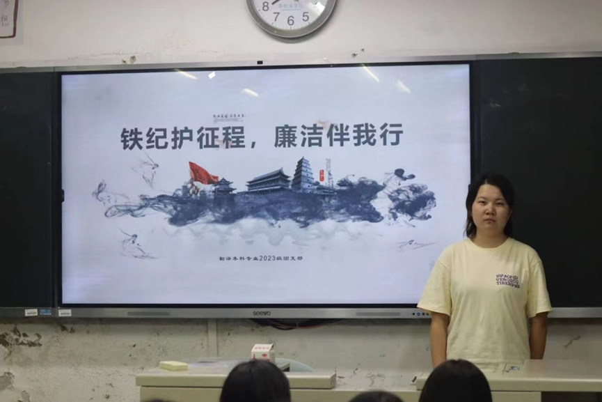 为了加强廉洁教育,引导党员干部树立正确的世界观,人生观和价值观,强化监督机制,严肃查处违纪违法行为,形成有力震慑,推动制度建设,构建不敢腐、不能腐、不想腐的长效机制,304永利集团23级翻译本科班团支部于4月16日晚上在一教202教室开展了“铁纪护征程 廉洁伴我行”主题团日活动。