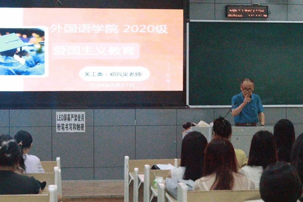 随着2024年毕业季的临近,为引导即将走出校门的毕业生进一步树立坚定的爱国情怀,为实现中华民族伟大复兴的中国梦贡献青春力量,304永利集团于2024年5月17日邀请了关工委邓兴义老师为2020级开展了一场爱国主义教育专题讲座。