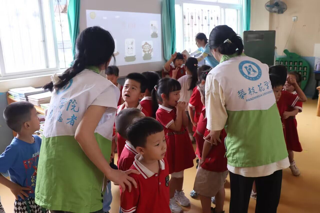 志愿者先为孩子们播放了一段他们所熟悉的动画片,这段精心挑选的动画片让孩子们感到亲切和兴奋。紧接着,他们展示的动物图画,瞬间燃起他们的热情,还积极地说着有关动物的英语单词,模仿着动物角色的发音。在这个过程中,志愿者们耐心地纠正发音,鼓励孩子们大胆开口,让他们在轻松愉快的氛围中学习英语。